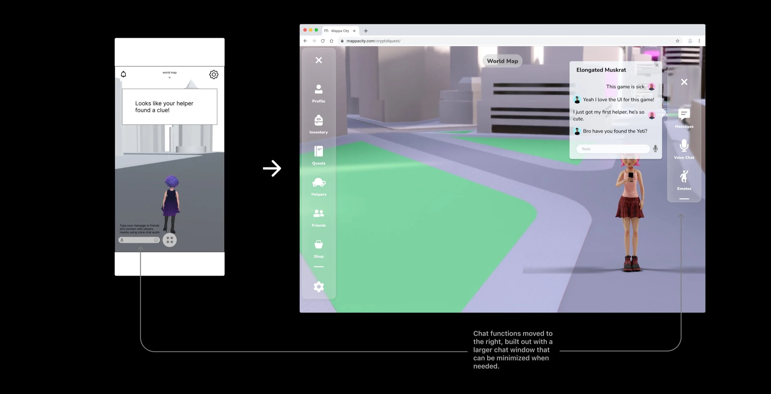 A challenge we faced as a team was a lack of familiarity with game UI design. Unlike mobile or web design, game design introduces complex mechanics and unfamiliar UI elements that we as a team had to quickly learn. The discrepancy in game design and blockchain knowledge between our team and the client made communication difficult at times. An additional constraint was the animation needed to make a high quality prototype was beyond our skills or time frame. As a result, while game UI elements are interactive in the prototype, perspectives and characters are static on screen and require a modicum of imagination in order to “play the game”.
